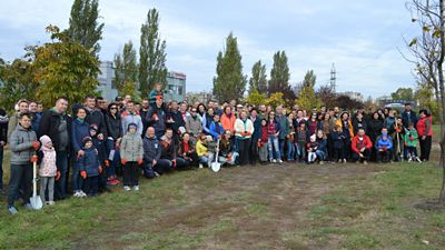 Цього року, протягом 2,5 годин ми висадили 120 дерев сортів : катальпа, сумах, сакура і магнолія, а також близько 200 кущів, квітів та ґрунтопокривних рослин на ділянці навпроти салону «Тойота Сіті Плаза» в Оболонському районі столиці.